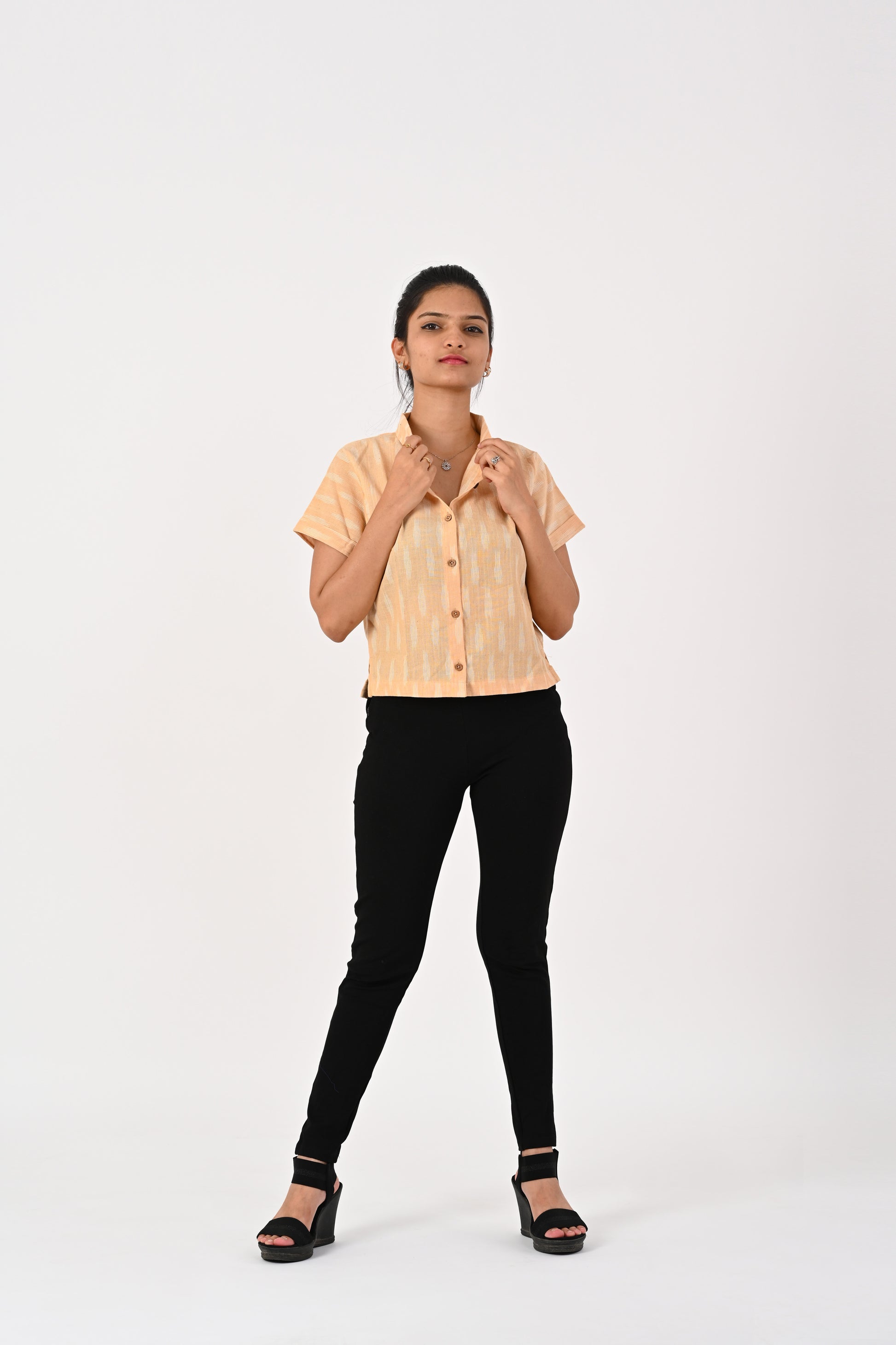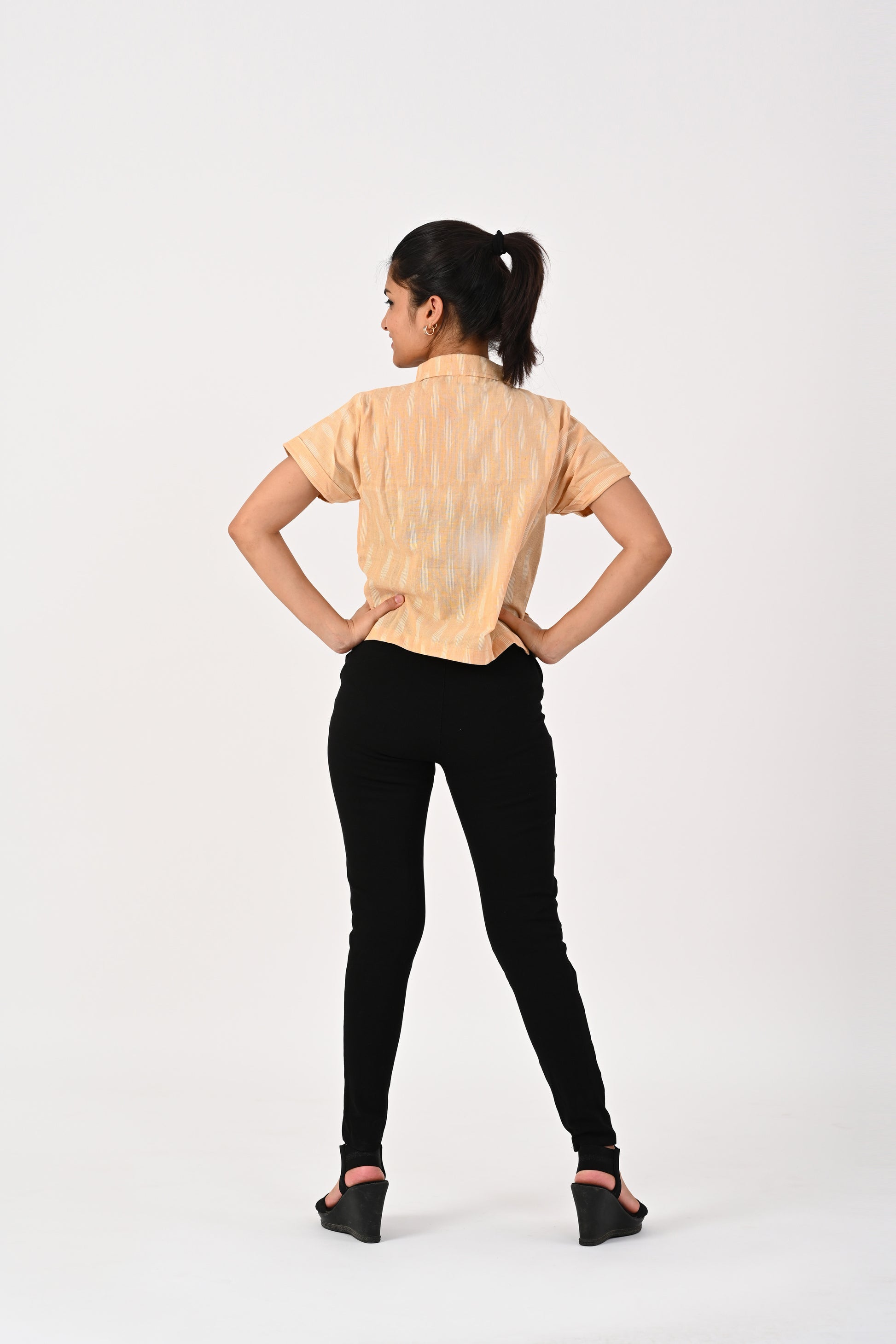 Beige Ikkat Cropped Shirt